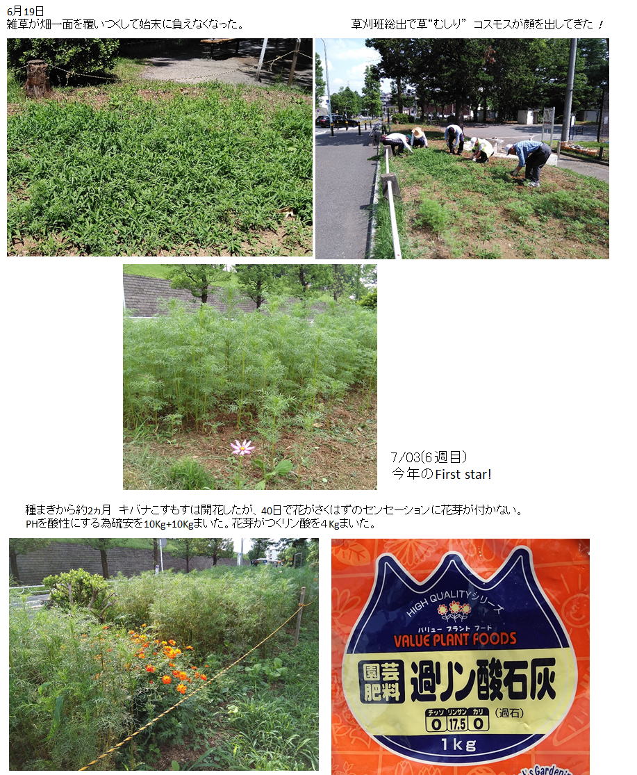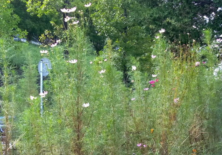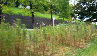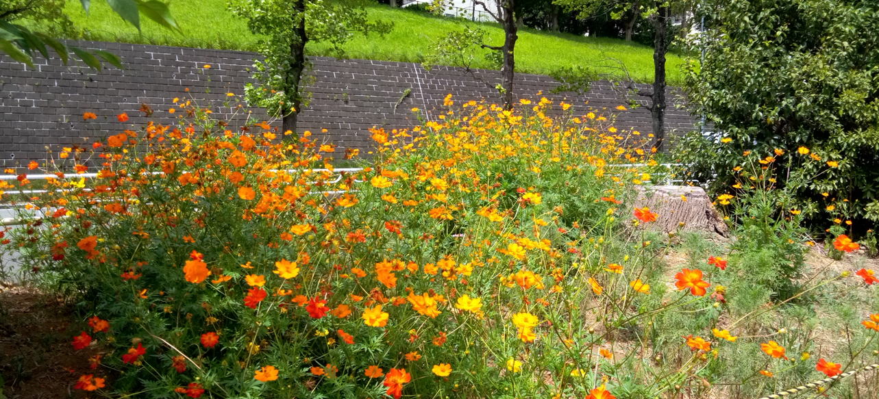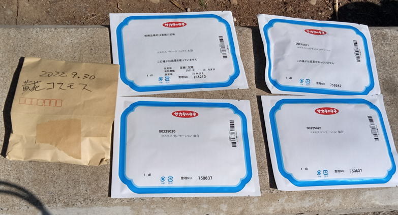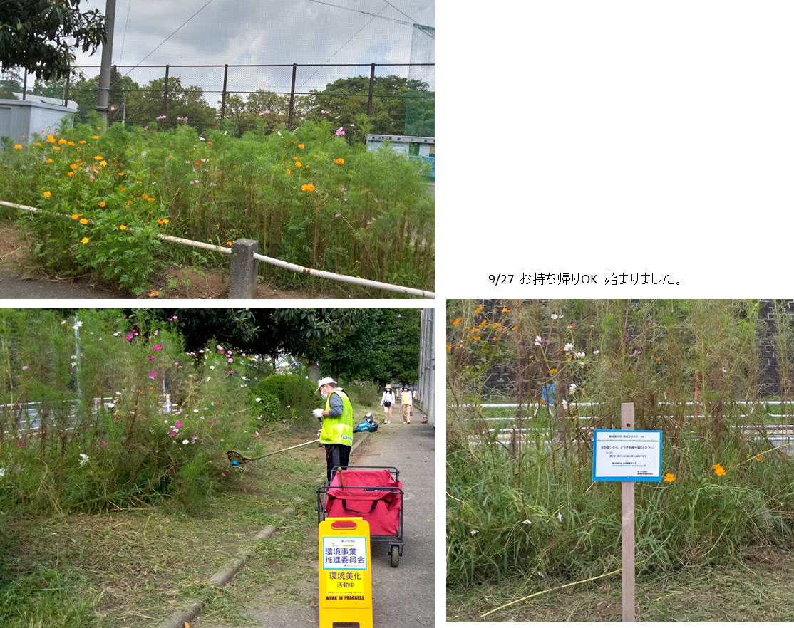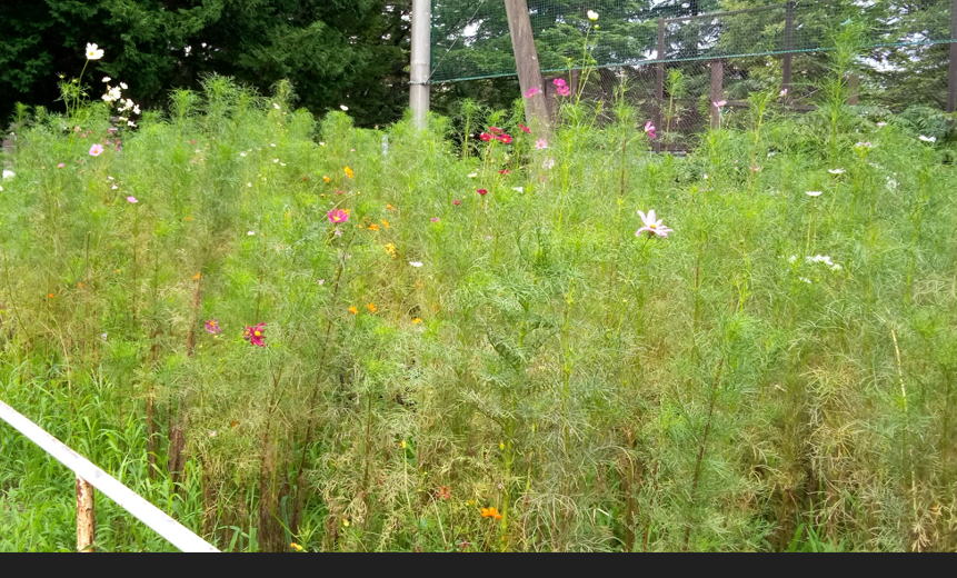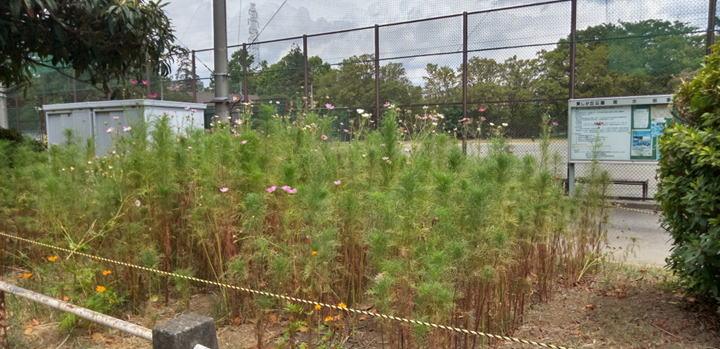 9/30 2022年のコスモスは刈り取って終わりました。元気に育つわりにはまだ花が少ない。(要研究です)