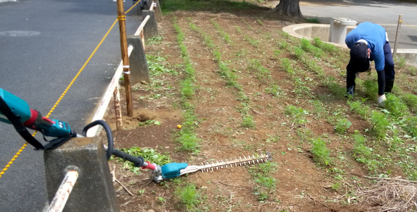 畑まわりも草刈りして、公園をきれいに整備しています。