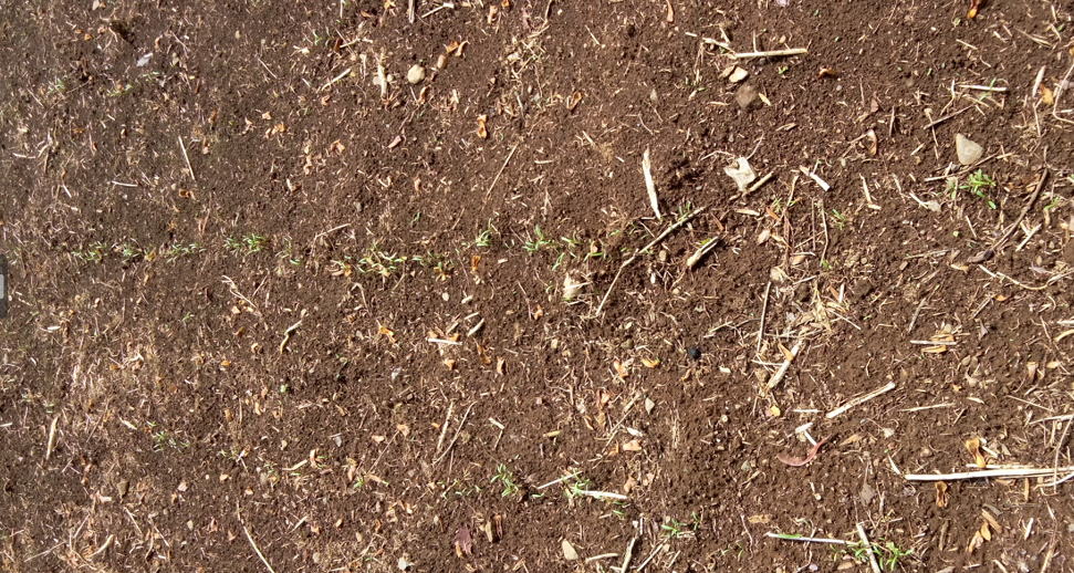 種まき後、3日間雨が降り続き、雨が上がった後には発芽率100%
