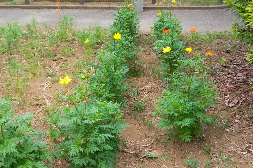 9/06 黄花コスモスが終わり、秋コスモスがちらほらと。