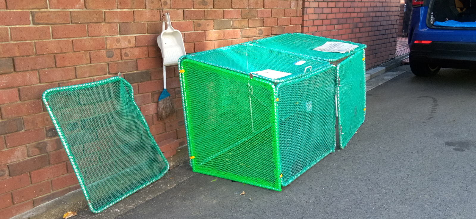 植栽のツツジを移植し、レンガで置き場を作り、新品のゴミ箱を提供した。