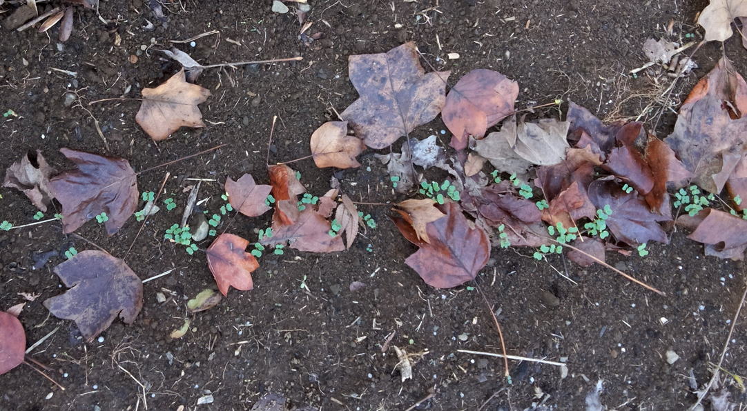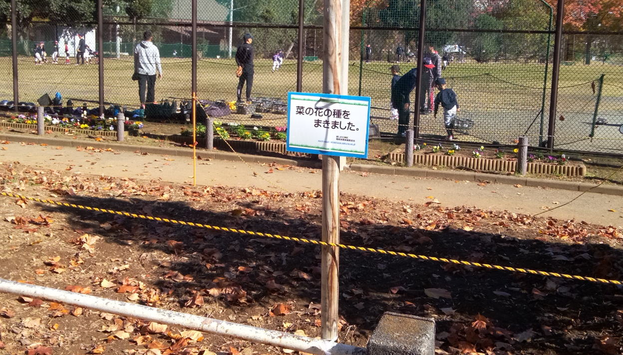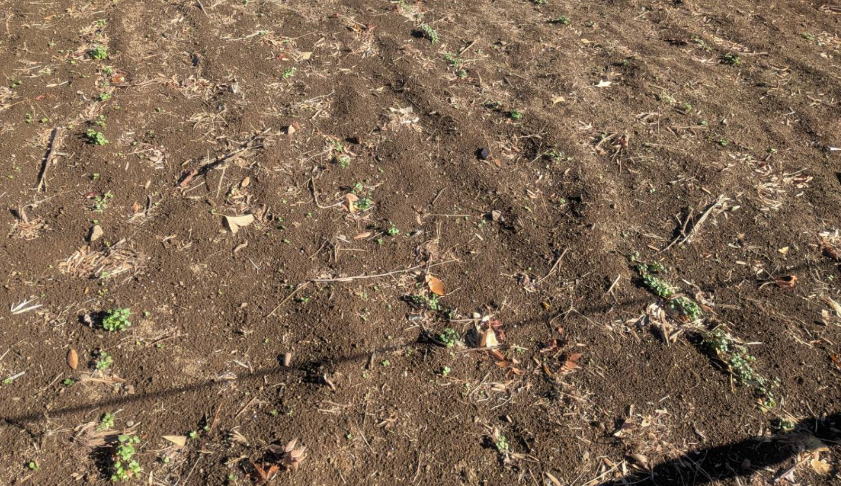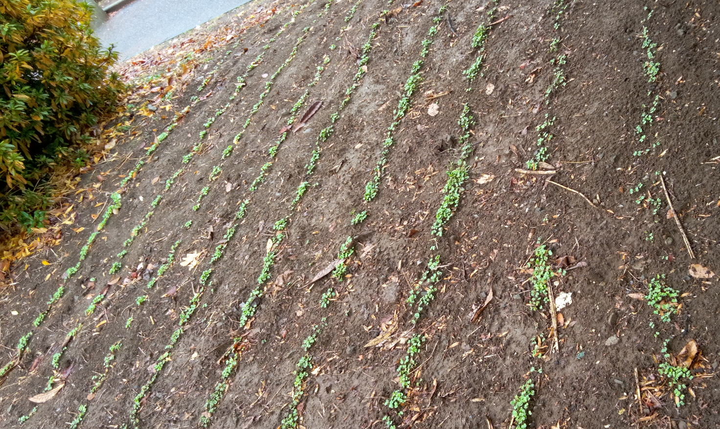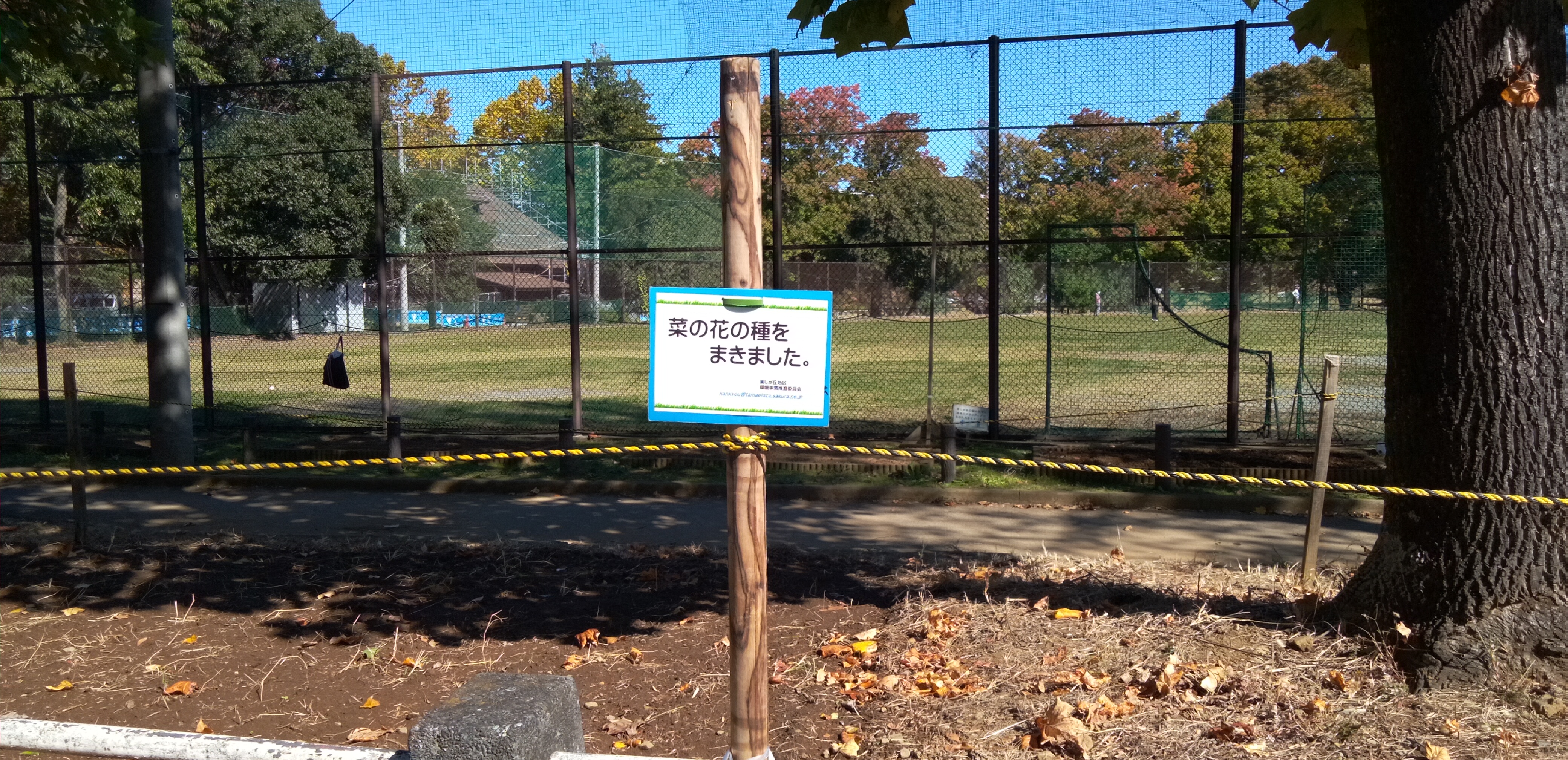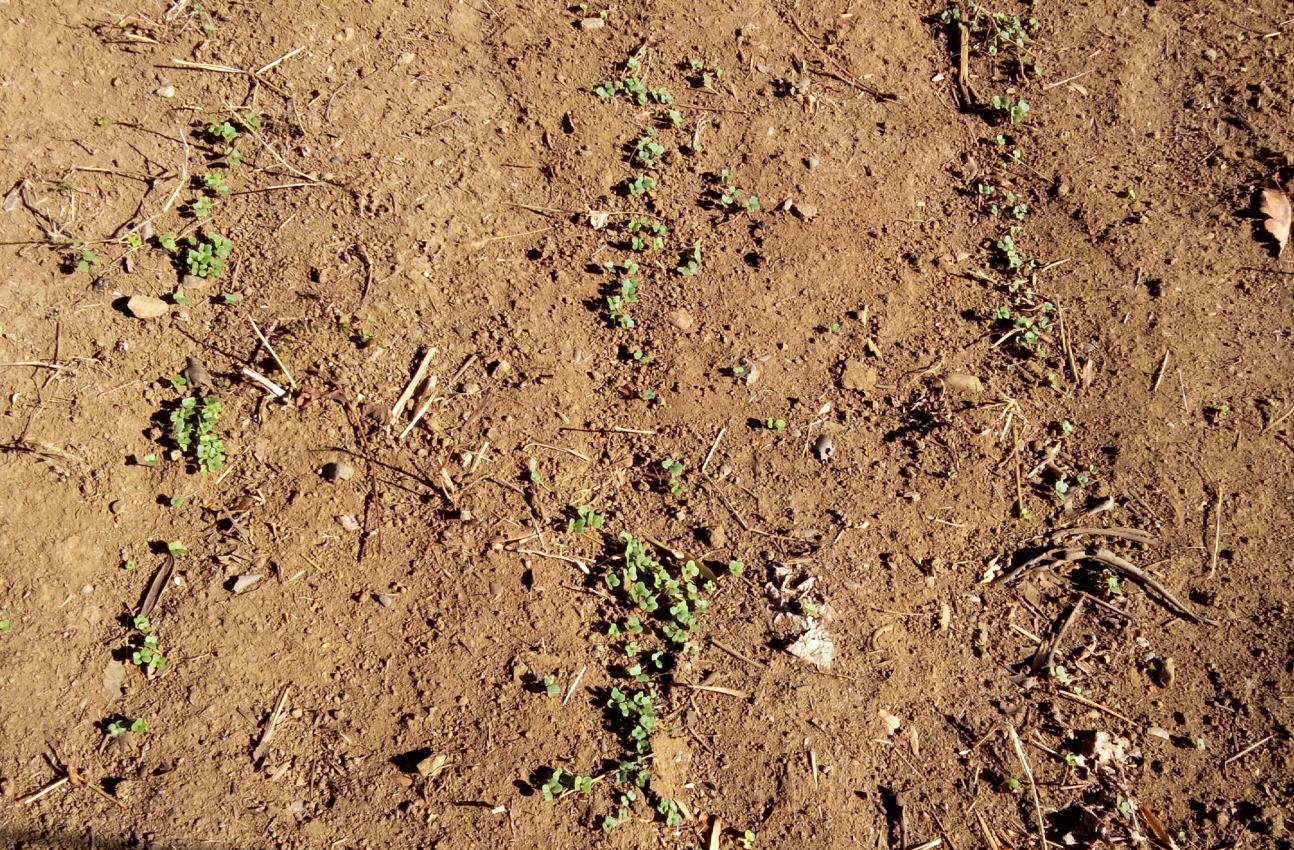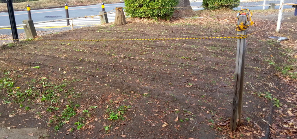 12/9 大きなもみの木に太陽をさえぎられて育ちの悪い畑に種をまきなおし。間に合うか?