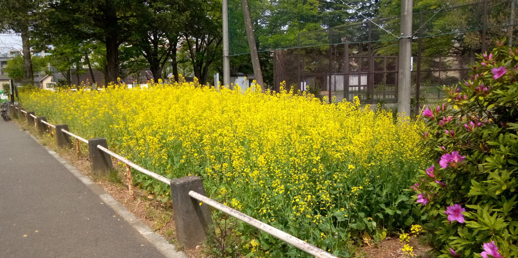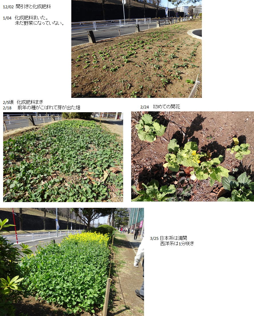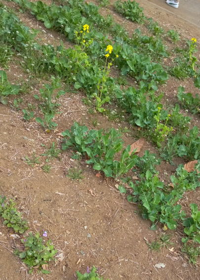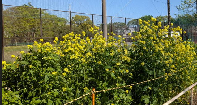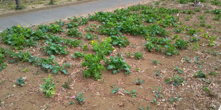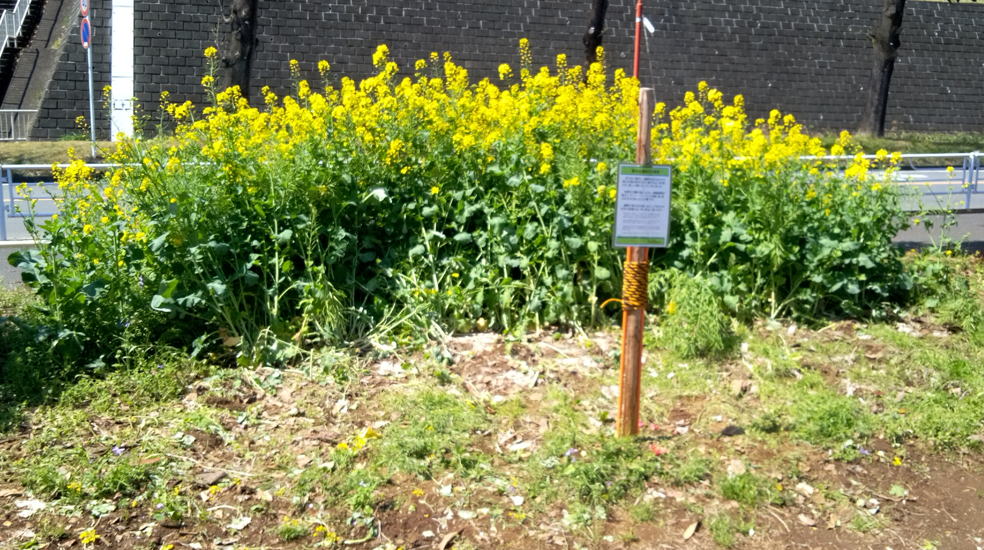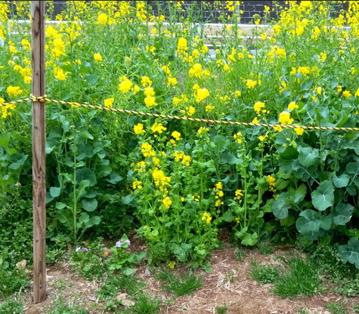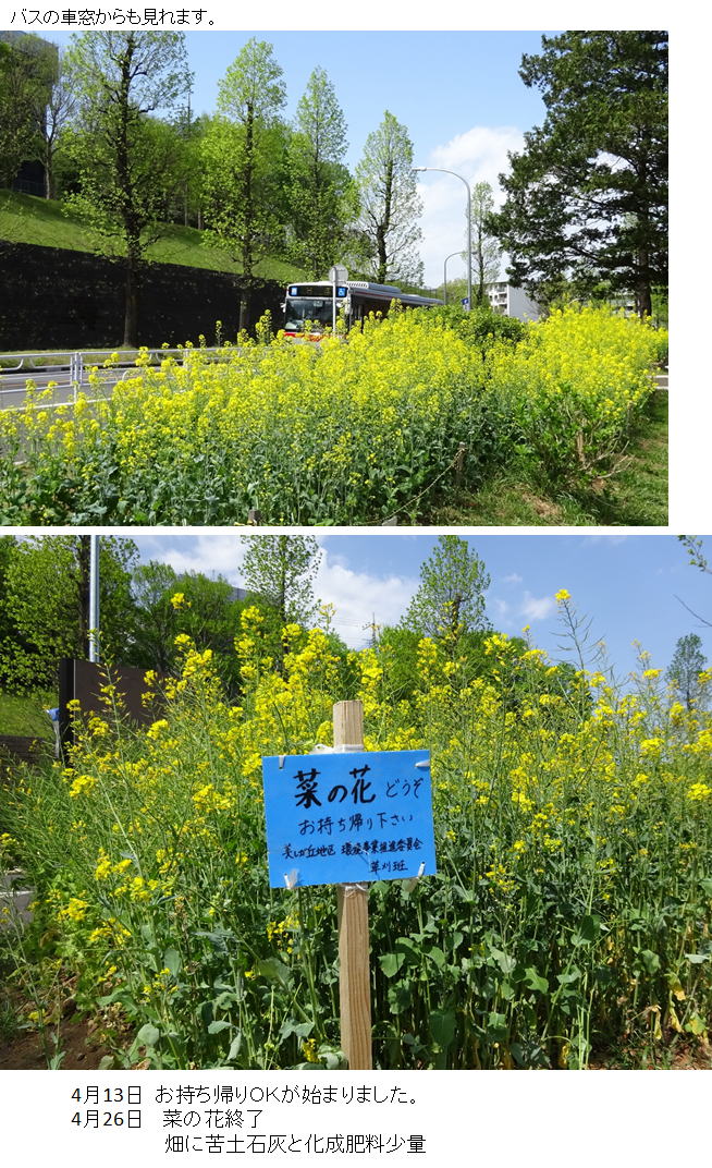 5/05 菜の花が終わりました。今年は寒い冬が続いたせいか、背丈も低く花つきも良くなかった。