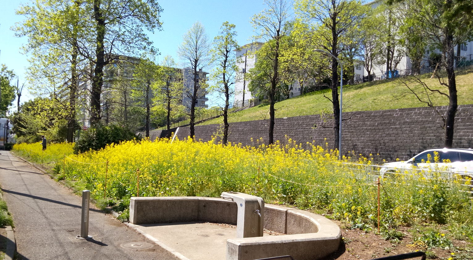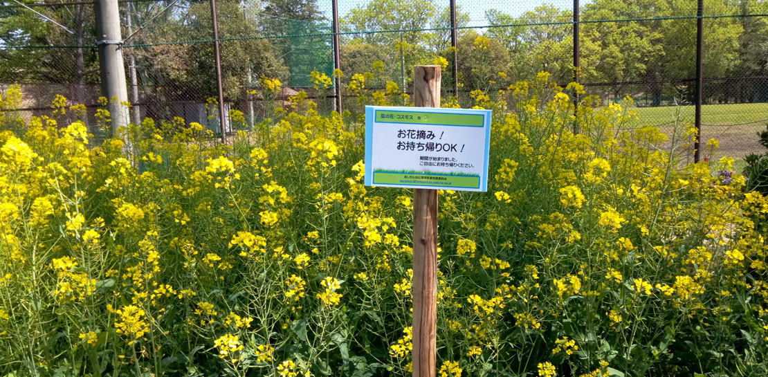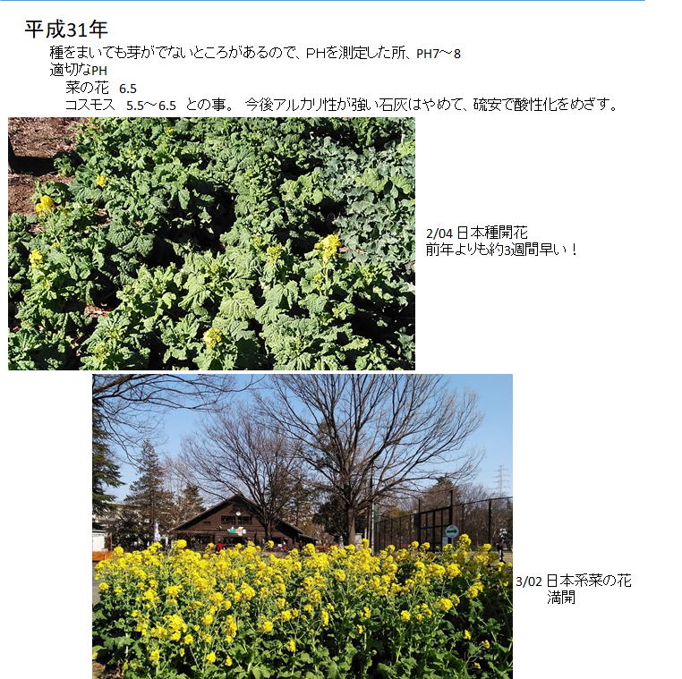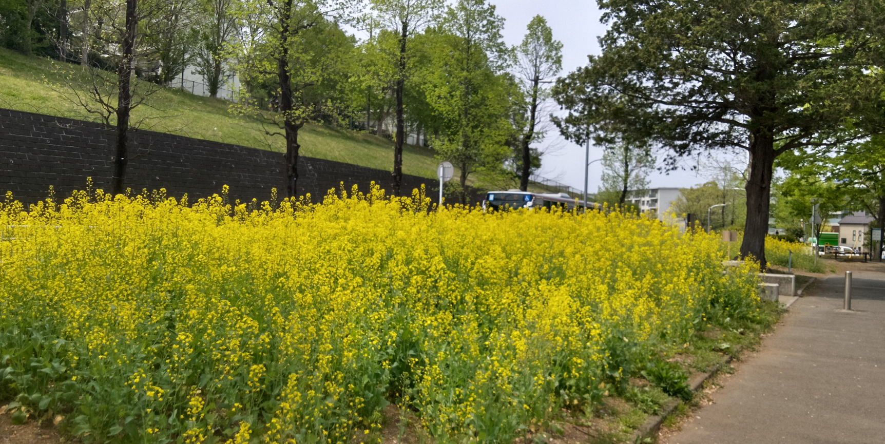 5/05 菜の花が終わりました。今年は寒い冬が続いたせいか、背丈も低く花つきも良くなかった。