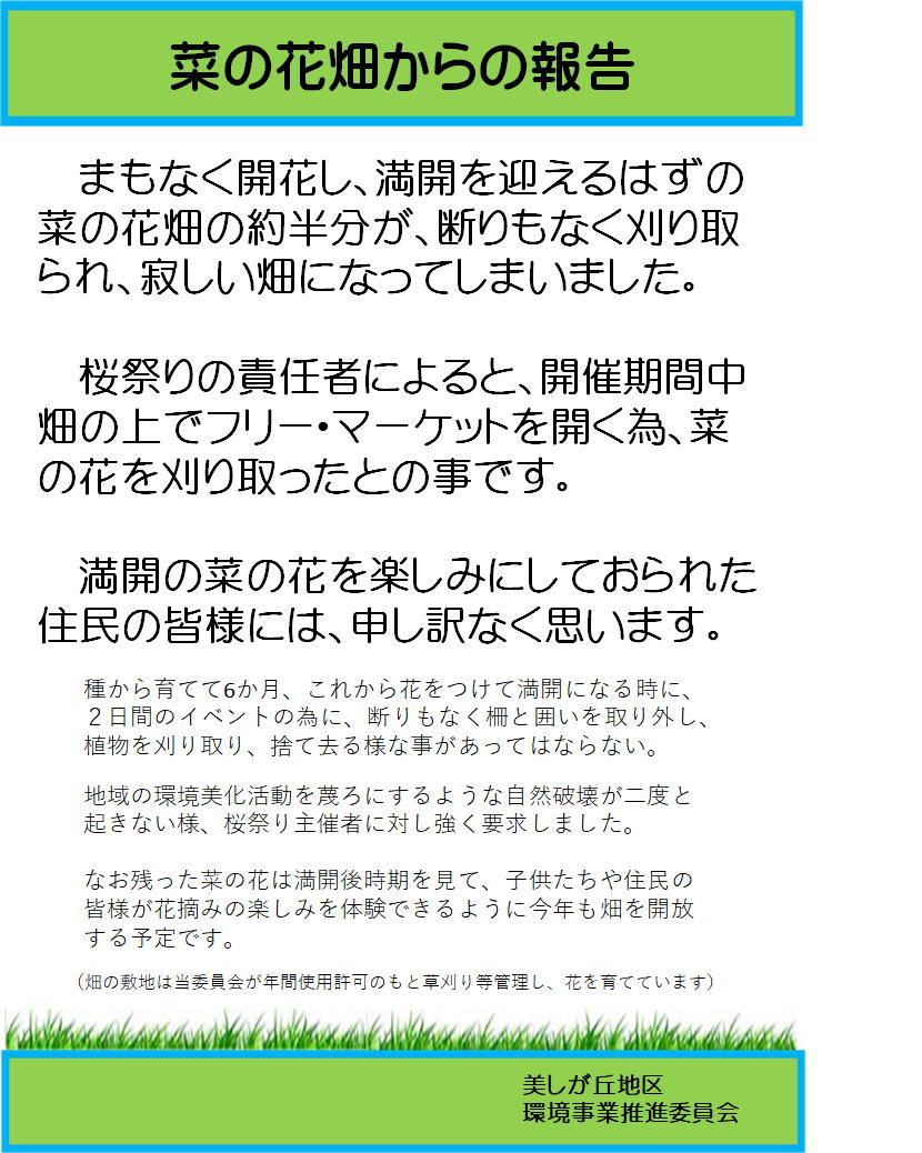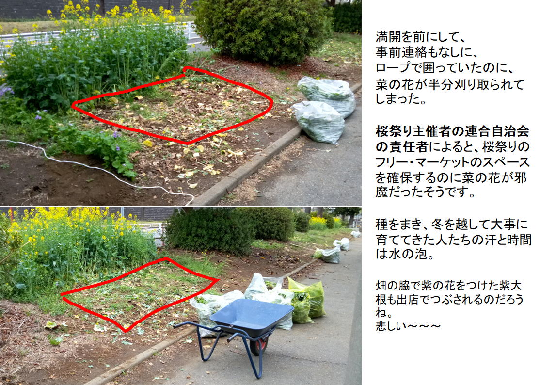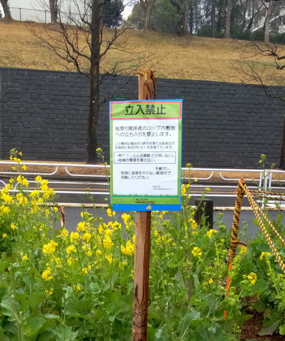 3/23 桜祭り対策で立入禁止の看板を立てた。